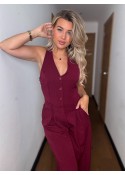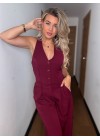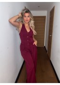 Het jumpsuit heeft een V-hals, elastiek aan de achterkant en een halter bovenkant.