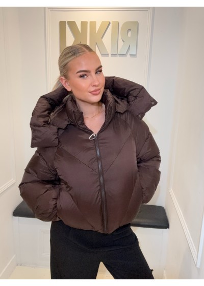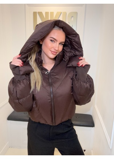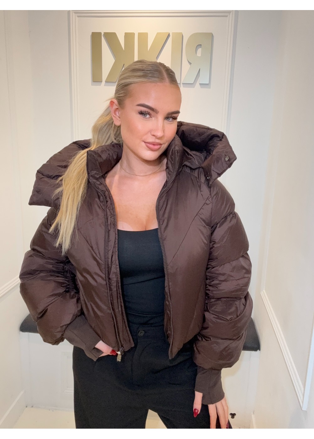 Val op met deze korte gewatteerde pufferjas. Deze jas heeft een hoge kraag, een capuchon