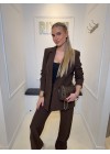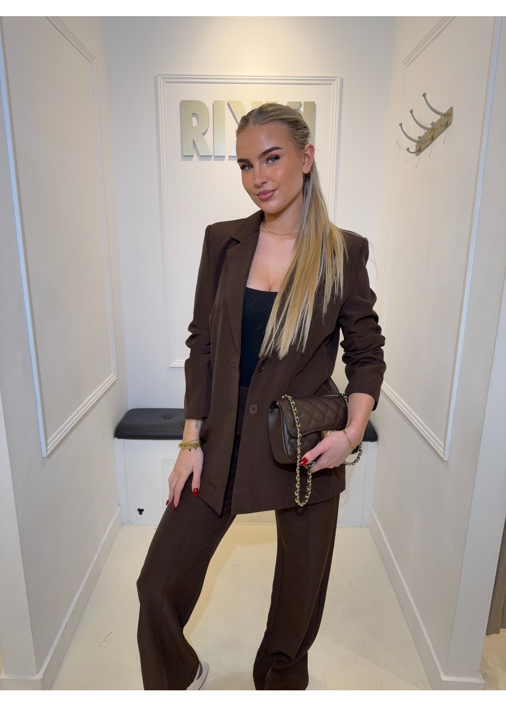 De blazer heeft een kraag, 2 knopen, lange mouwen en dichte flap zakken.