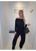 De broek is gedetailleerd met een elastieke taille band en en steekzakken.