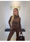 Gemaakt van een zachte, stretchy stof die moeiteloos meebeweegt met elke beweging. De mix van black en chocolate geeft het pak een luxe, moderne uitstraling — ideaal voor zowel een actieve dag als een relaxte off-duty look.