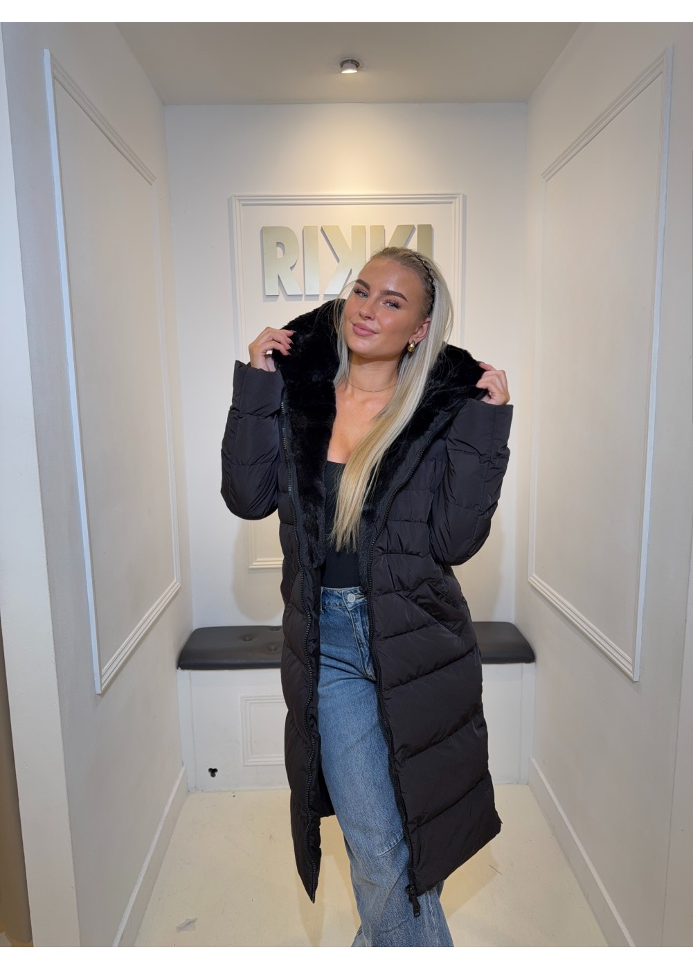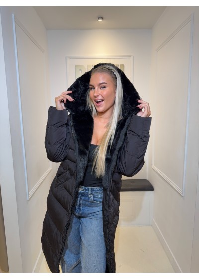Aan de binnenkant heeft deze jas een imitatiebont voering.