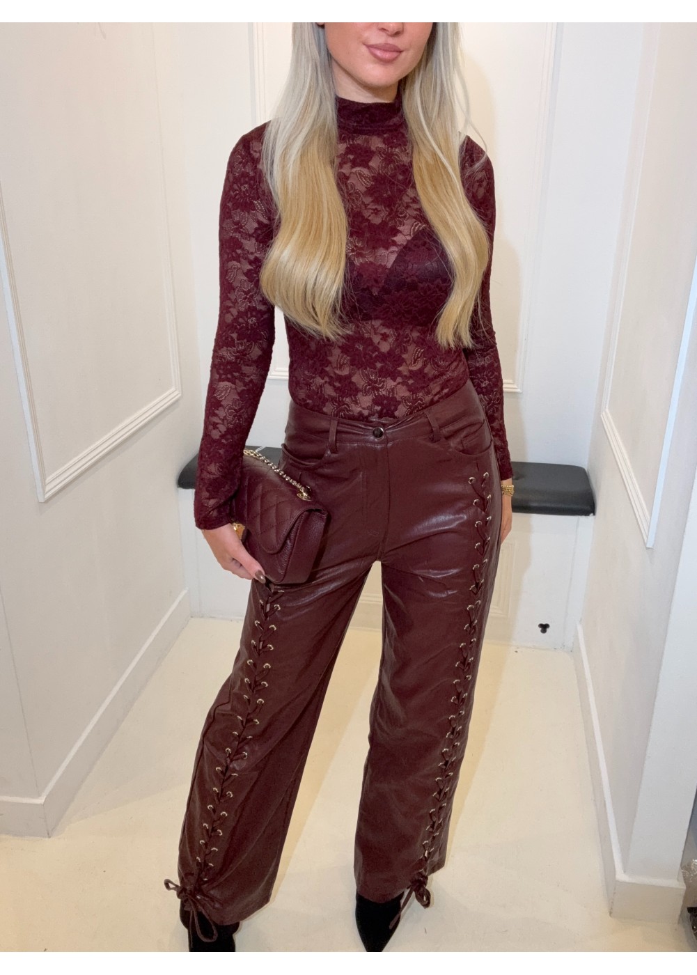 You Lost Your Chance Pants Burgundy 10738-1