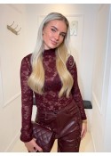 Gedetailleerd met kant waardoor de top doorschijnt.
