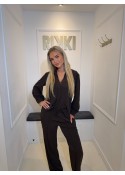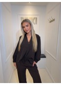 De blouse heeft een kraag, een V-hals en lange mouwen.