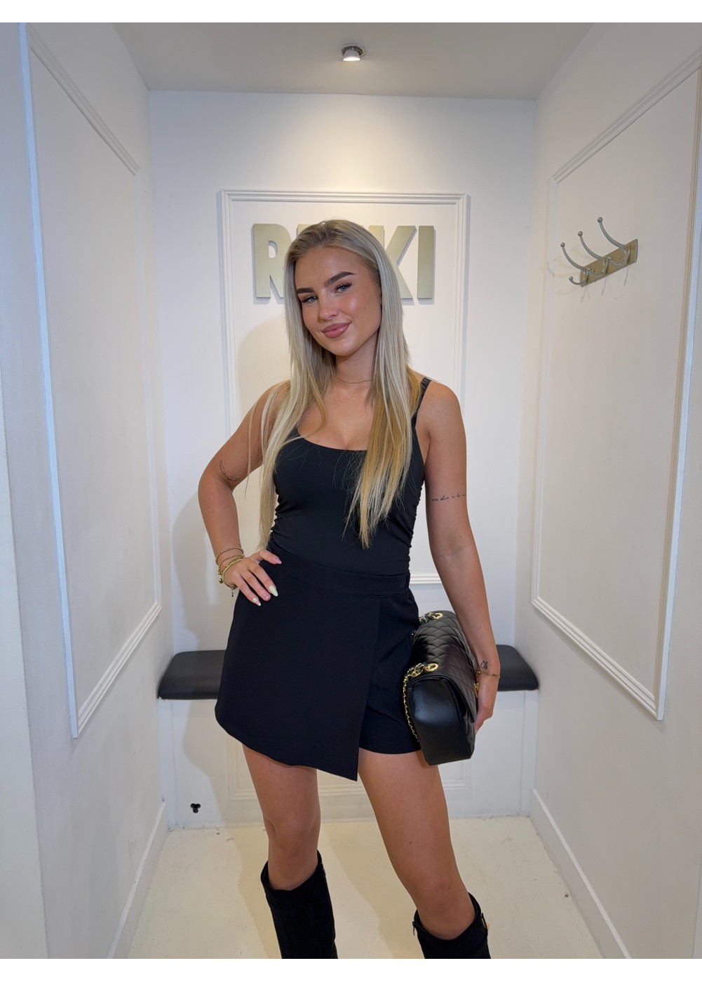 Het broekje heeft een vast overslag detail waardoor het op een rokje lijkt.