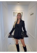 De blazer heeft lange mouwen, een kraag en neppe zakken.