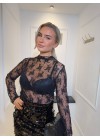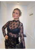 Gedetailleerd met een subtiele glitter en kant waardoor de top doorschijnt.