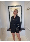 De playsuit heeft een kraag, een V-hals, schoudervulling en lange mouwen.