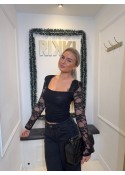De Top heeft een vierkant uitgesneden hals en lange mouwen.