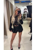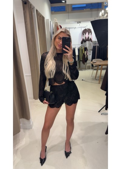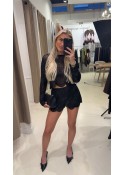 De top heeft een ronde hals, lange mouwen en valt cropped.