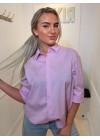 Gedetailleerd met een kraagje, knoopjes en opgerolde mouwtjes.