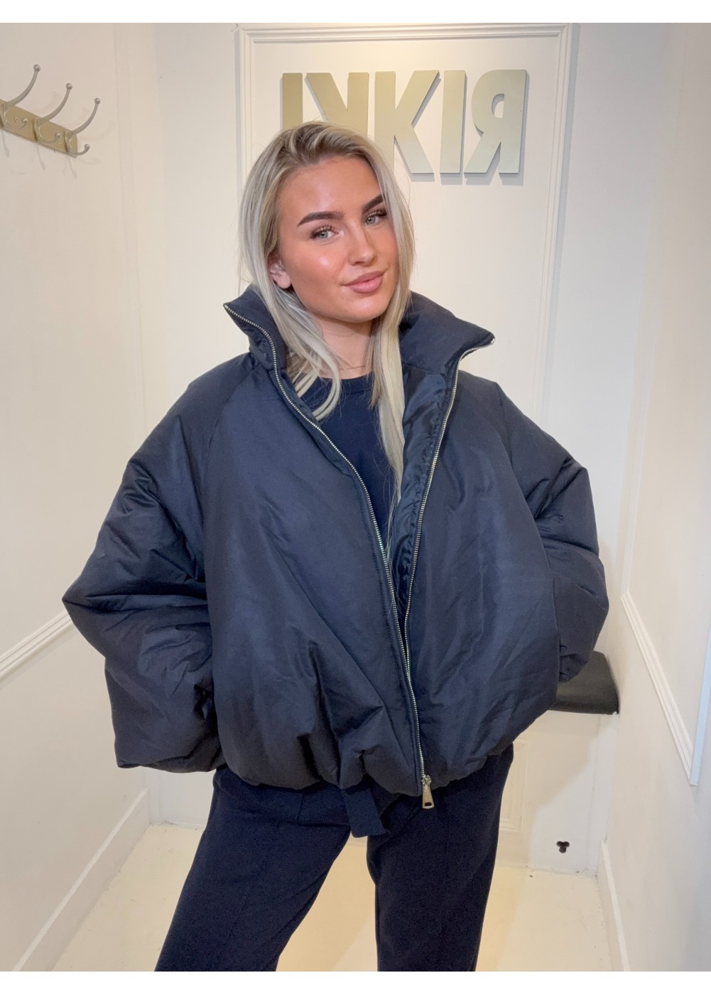 Gedetailleerd met elastiek aan de onderkant waardoor het jasje gepoft valt.