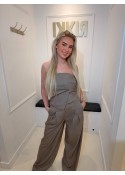 De top is strapless en heeft elastiek aan de achterkant.