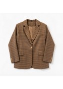 De blazer heeft een ruitjes print.