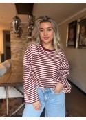 Het shirt heeft een ronde hals en lange mouwen.