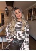 Het shirt heeft een ronde hals en lange mouwen.