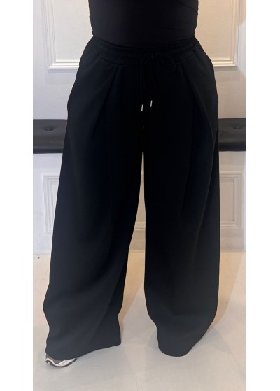 De broek heeft een balloon fit, steekzakken en een elastieke tailleband met een aanrijgkoord.