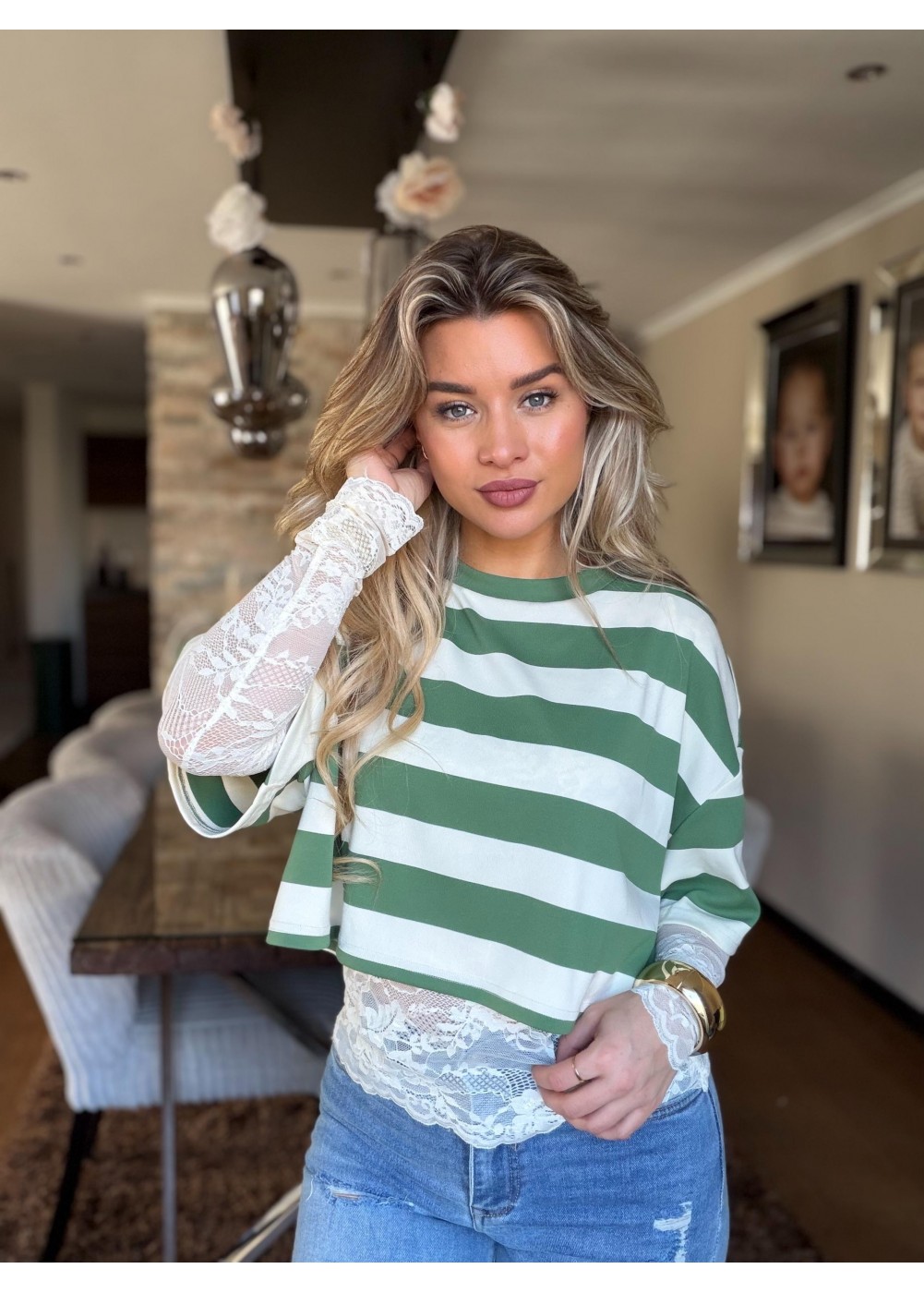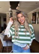 Elegant Green Stripe lace Layer Top