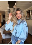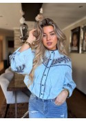 Bohemian Skye Blue Embroidered Cropped Blouse