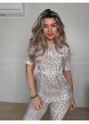Het shirt heeft een ronde hals en korte mouwen