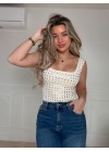 Deze body heeft een strik in de taille voor een mooie, vrouwelijke pasvorm en studs die een stoere, edgy touch geven. Mouwloos en strak, ideaal om te combineren met jeans, rokjes of onder een jasje. Een echte must-have voor een casual dag of een avondje uit.