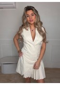 Het jurkje heeft een V-hals en een kraag.