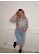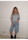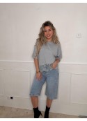 Deze denim bermuda met glitters geeft je outfit een party uitstraling.