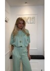 De top heeft valt cropped en heeft elastiek aan de onderkant.