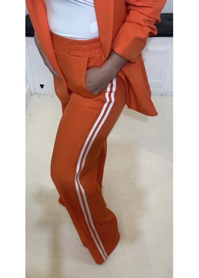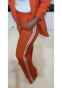 Sporty meets chic. Deze oranje broek met dubbele zijstreep is gemaakt van 95% polyester en 5% elastico, wat zorgt voor een comfortabele stretch en een gestroomlijnde pasvorm.