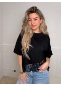 Het shirt heeft een ronde hals en korte mouwen