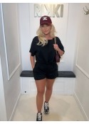 Het korte broekje heeft een elastieke tailleband aan de achterkant en steekzakken.