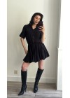 Het jurkje heeft een kraagje, korte mouwen en elastiek in de taille.