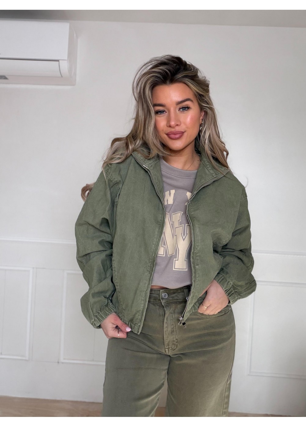 FINDING MY WAY DENIM JACKET ARMY 11158